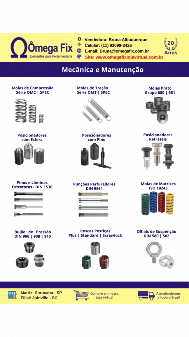 Posicionador Om614 m 5x6 - com Mola e Esfera versão lisa (Embalagem 20 Peças)
